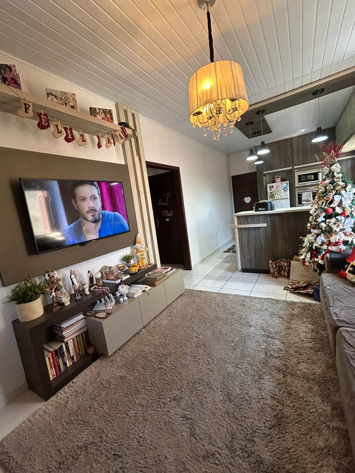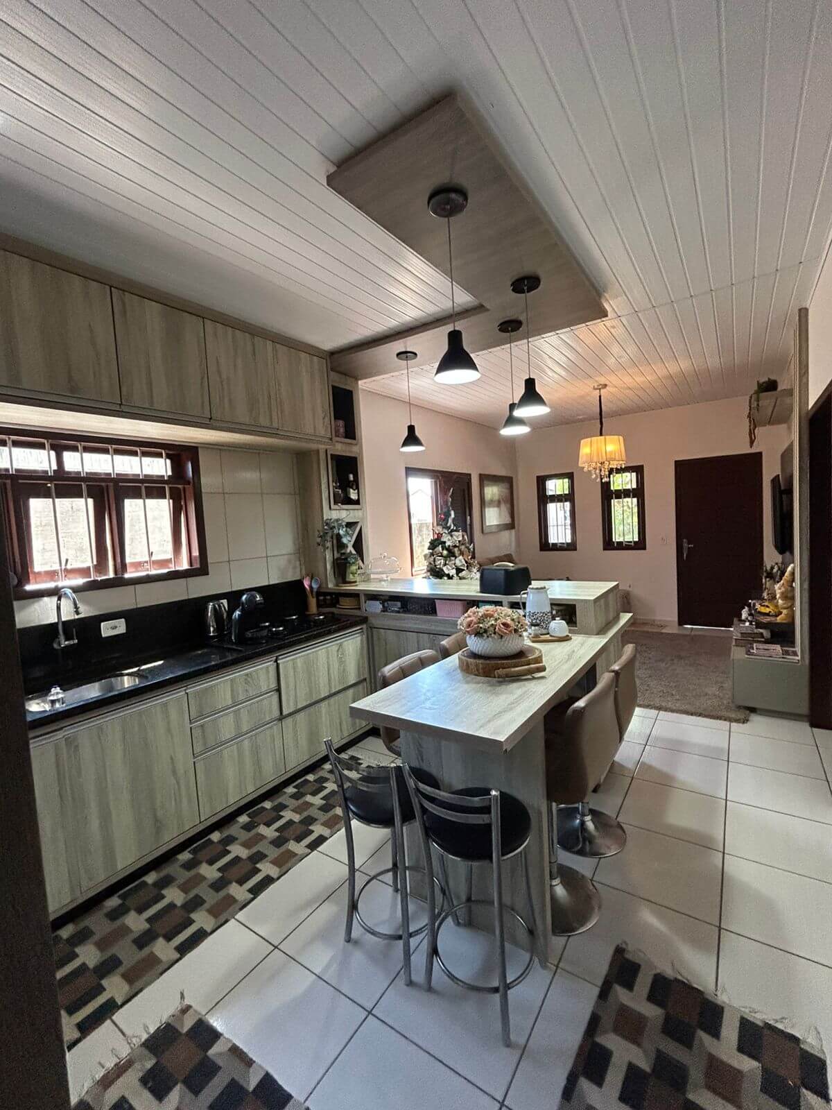 Sala integrada à cozinha, criando aquele ambiente gostoso onde a rotina acontece perto de quem a gente ama.