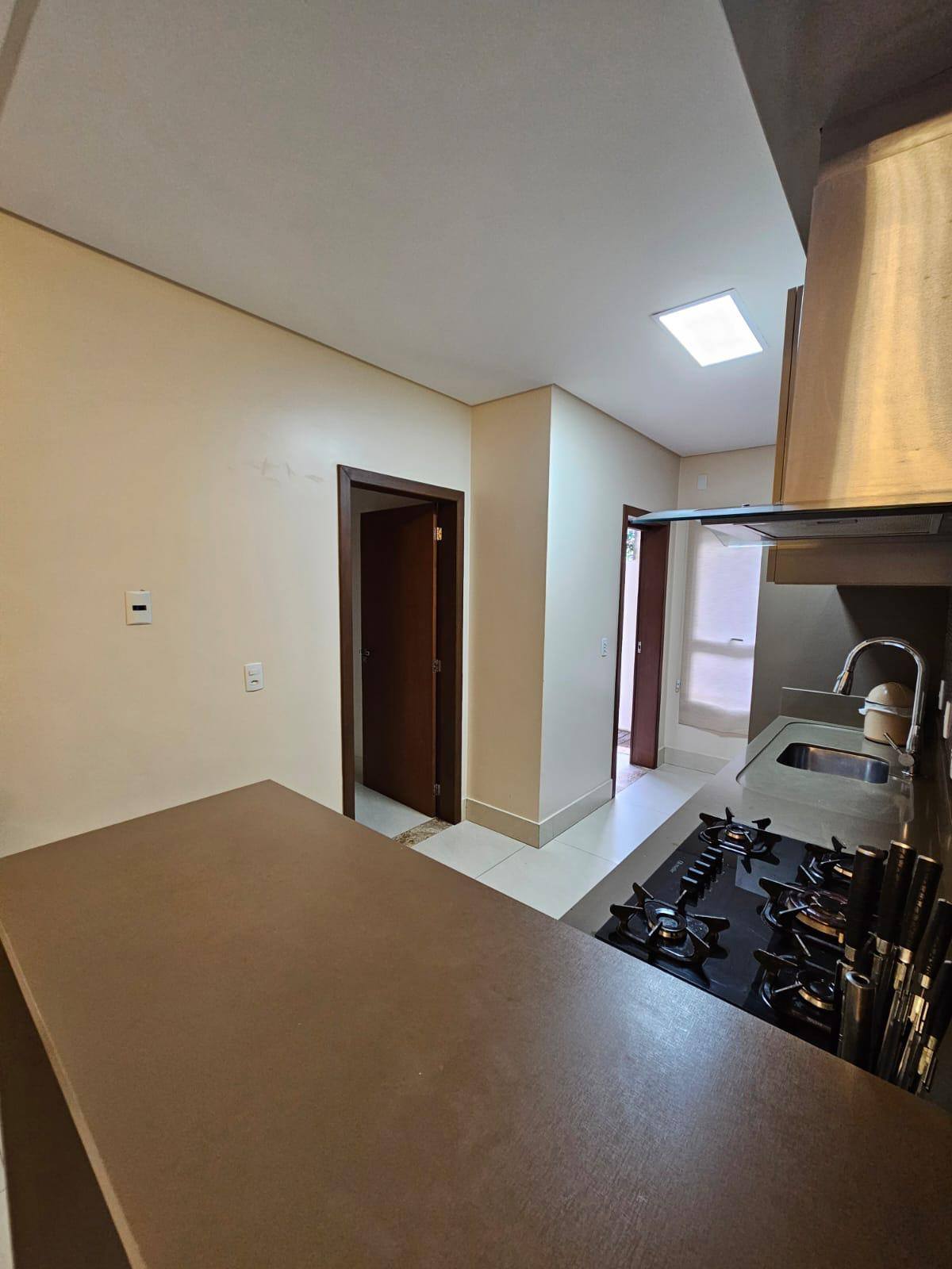 Balcão de pia e aéreo com portas de vidro da área gourmet